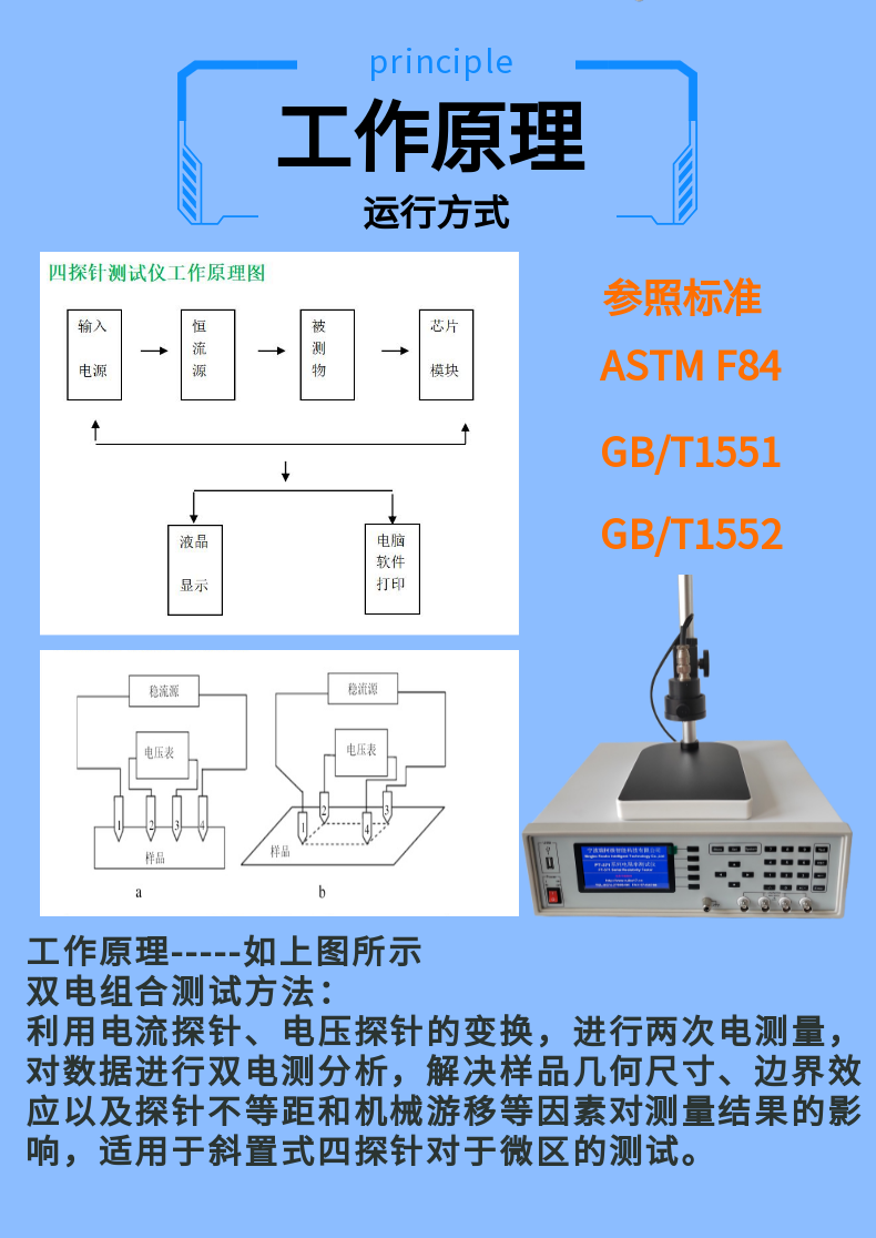 四探針測試儀是運(yùn)用四探針測量原理的多用途綜合測量設(shè)備,用來測試半導(dǎo)體材料電阻率及方塊電阻(薄層電阻)。儀器具有功能選擇直觀、測量取數(shù)快、精度高、測量范圍寬、穩(wěn)定性好、結(jié)構(gòu)緊湊、易操作等特點(diǎn)。
