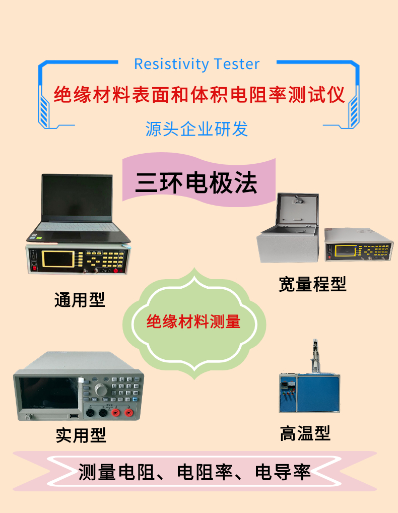 在絕緣材料行業中電阻率的測量是衡量材料品質的重要指標,橡膠,塑料以及衍生品的薄膜,布料,等已經產品的應用不同,有些表面應用時需要測量表面電阻率,有些整體性應用時,需要測量體積電阻率數據,被制作和加工成各式各樣的產品.